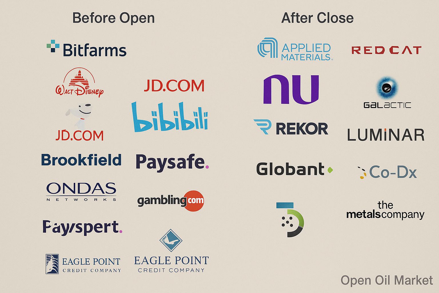 11月13日,多家重要的美国公司发布了财务报告。在市场开盘前,迪士尼(2025财年第4季度,报告在会议开始前发布)和比特农场(Q3,新闻稿约在8:00 ET)发布了业绩。在11月13日市场收盘后,美国技术与工业公司陆续发布报告:例如,应用材料(2025财年第四季度和整体报告,发布在16:00 ET后)和维珍银河(2025财年第3季度,NYSE收盘后)。此外,11月13日晚上,Rekor系统(道路交通的AI系统开发商)发布季度业绩,并于16:30 ET召开了电话会议,Luminar(汽车行业的激光雷达制造商,报告在17:00 ET发布),Beazer Homes(FY2025的最终季度,收盘后发布)等公司也发布了业绩。在美国金融部门,封闭式信用基金Eagle Point信用公司在上午发布了Q3的业绩,电话会议在10:00 ET进行。在小型公司的报告中,Ondas Holdings(无人系统和网络,报告在8:30 ET开盘前发布)、Paysafe(支付提供商,发布及上午电话会议)、Gambling.com(在线赌博服务,开盘前发布)、WorkSport(汽车配件及清洁科技,发布在开盘前)、Red Cat(国防无人机,16:30 ET电话会议)和Co-Diagnostics(诊断公司,在收盘后发布)等公司引起了投资者的关注。整体而言,在11月13日,美国市场发布了大量的季度业绩,根据Yahoo Finance的数据,此周四共有超过230家公司发布了报告,导致部分股票的波动增加。